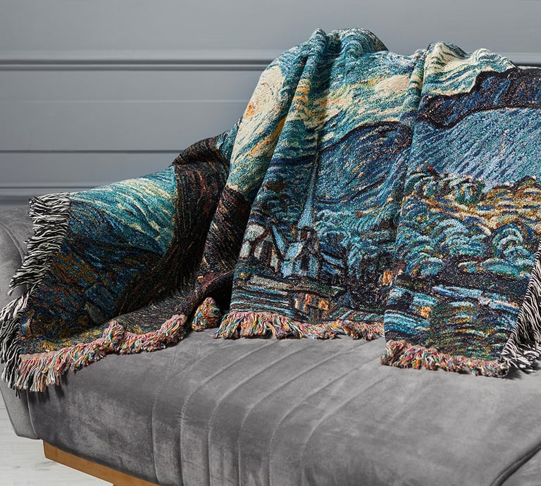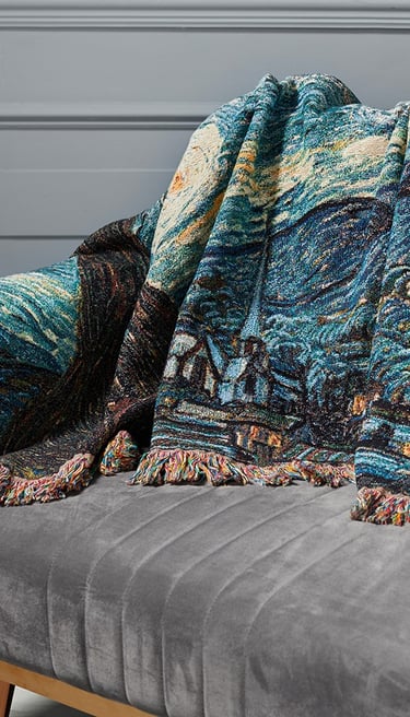 Jacquard soft-woven cotton throw blankets with fringed edges