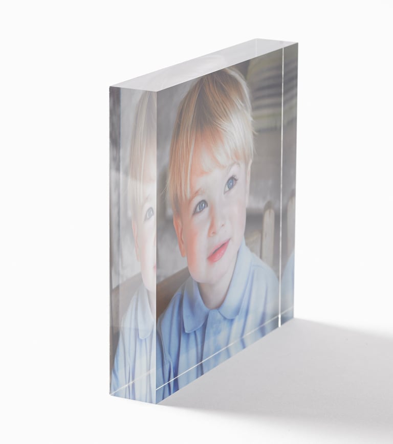 1" Thick acrylic block. Freestanding acrylic photo blocks with your choice of full back-mounted or transparent background