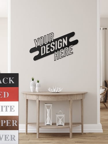 The Effect: This elevates the steel 1-inch from the substrate, allowing light to pass behind the laser-cut geometry and creating a dynamic "drop shadow."